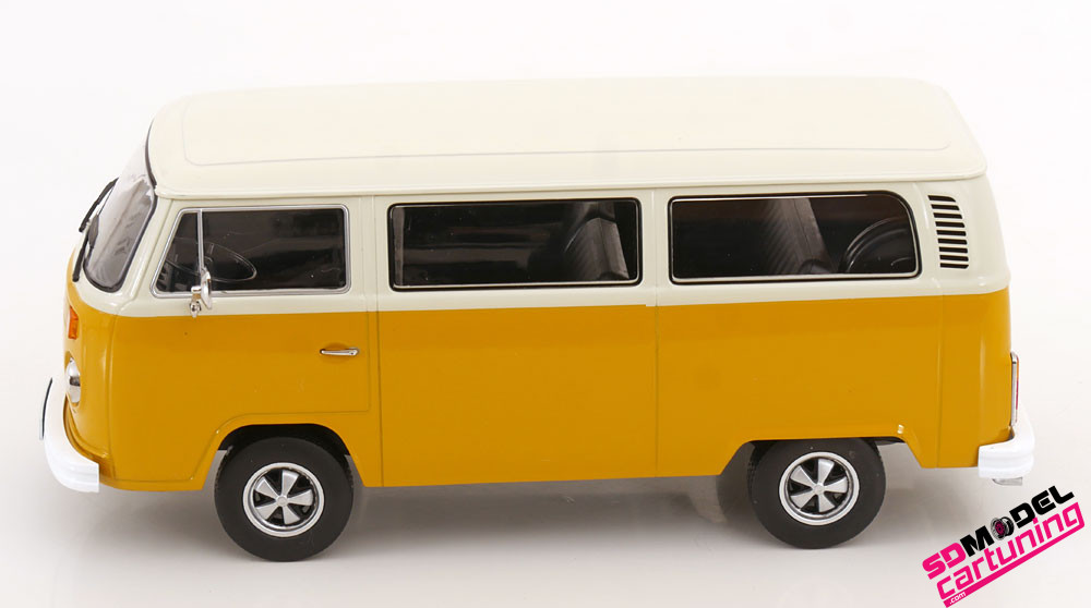 Maßstab 1:18: Volkswagen Bus T2b - 1972 - Gelb/Weiß - Fuchs-Felgen