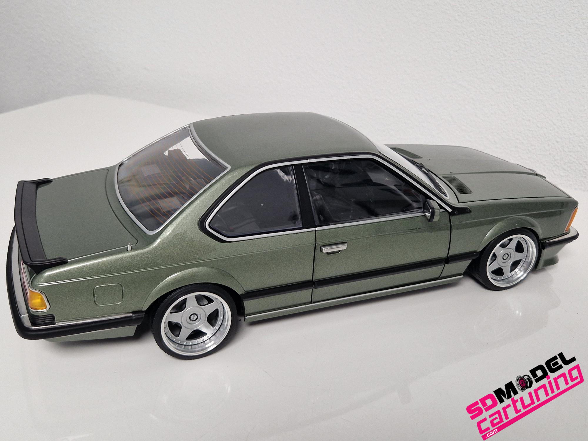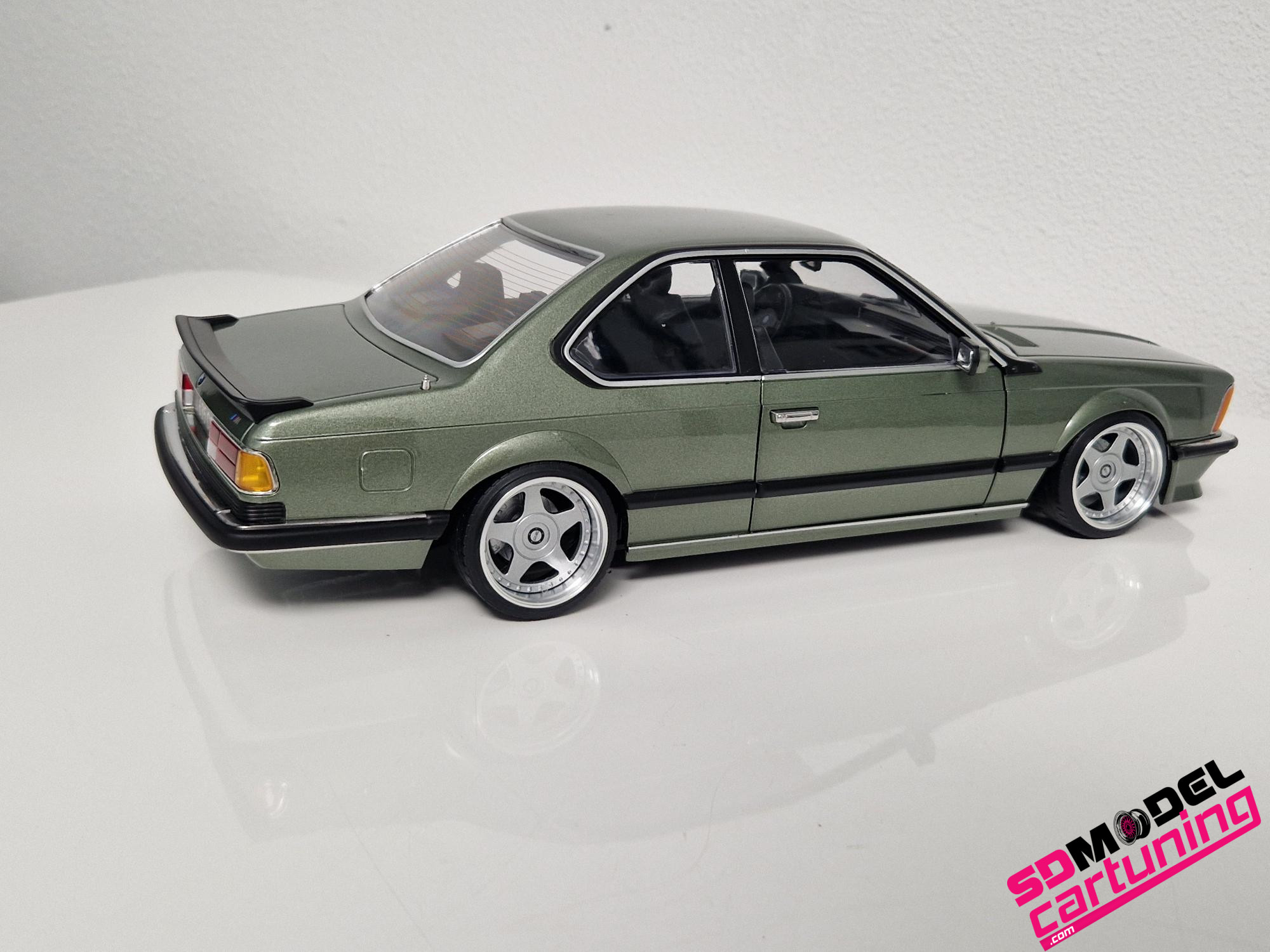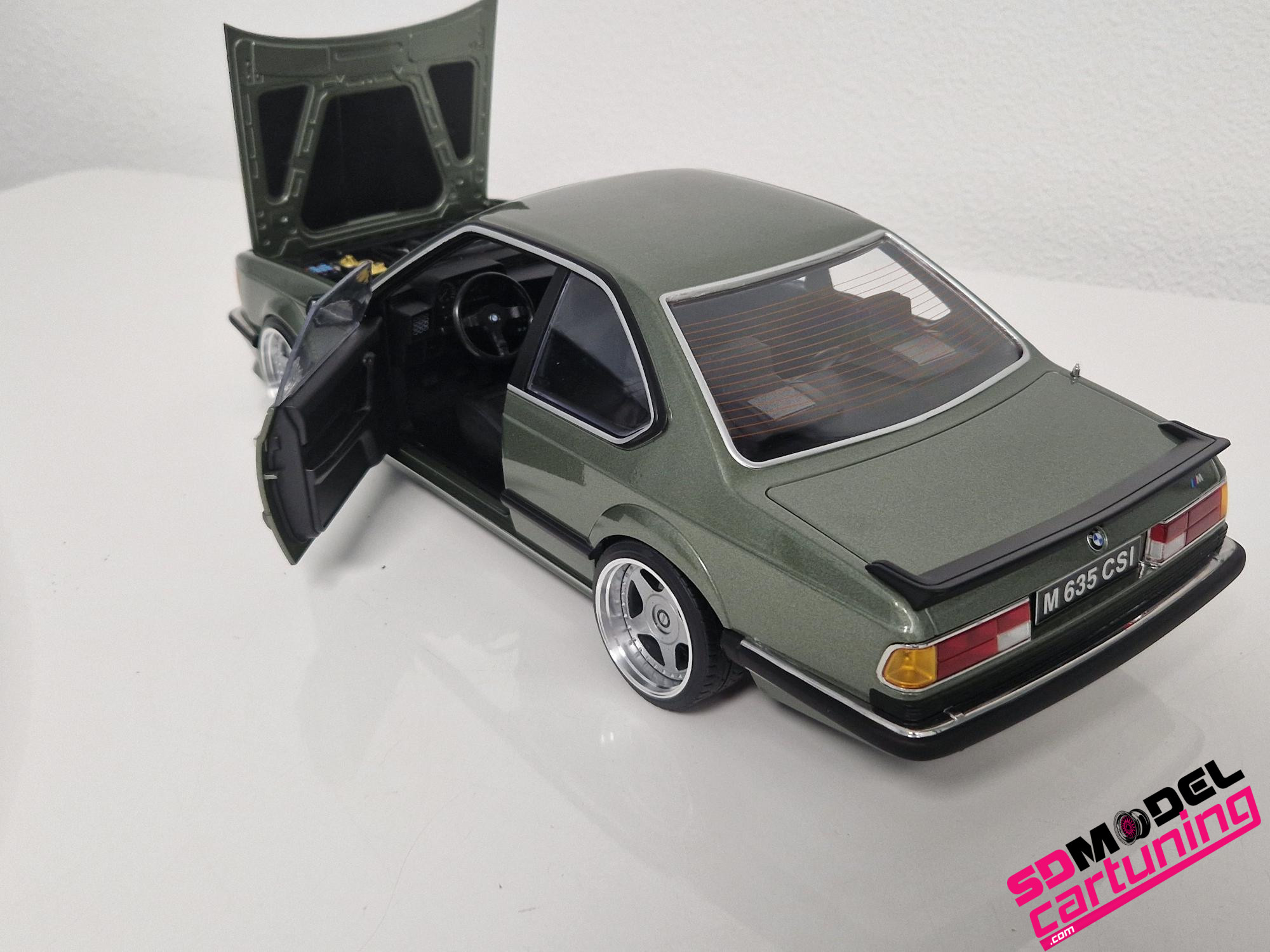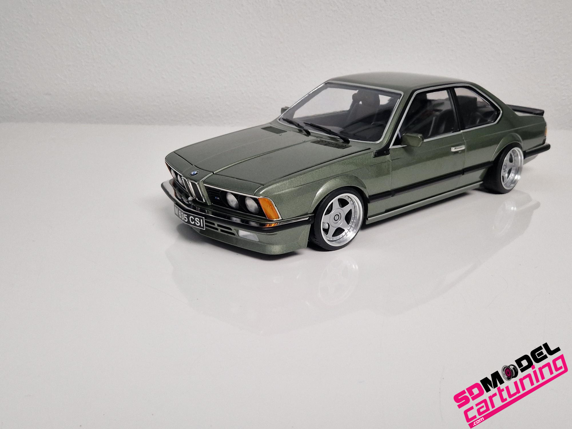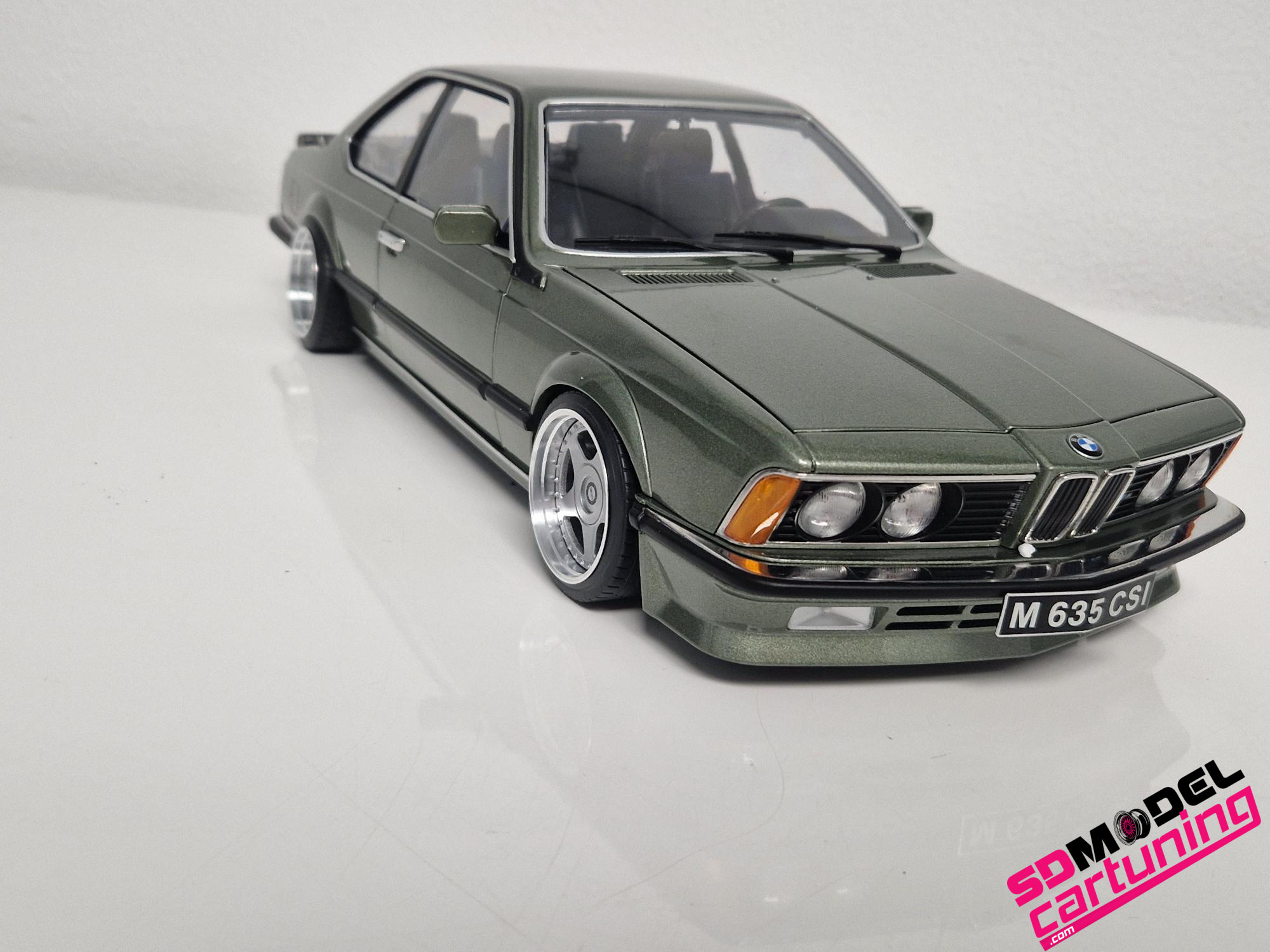 1/12 schaal: BMW M635i CSI E24 – 1987 – Smaragdgreen-Metallic is voorzien van speciale echte Aluminium OZ Futura velgen!